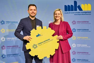 Christian Blahous, Leiter des Musikschulverbandes Waidhofen/Ybbstal und Lukas Schönsgibl, Leiter der Musikschule der Landeshauptstadt St. Pölten, widmeten sich dem Thema Musik- und Kunstschule und analysierten, welche Chancen die Musik- und Kunstschulentwicklung für Niederösterreich bietet. Seit fast zehn Jahren wird in verschieden Modellen das Thema Musik- und Kunstschulen in Niederösterreich vorangetrieben, mit dem Erfolg, mittlerweile ein österreichweit einzigartiges Kunstfächerangebot anbieten zu können.