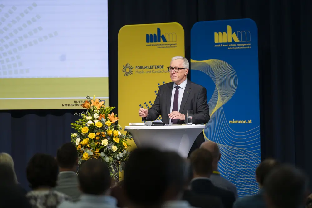 Johannes Pressl, Präsident im NÖ Gemeindebund, der mit einer Videogrußbotschaft zur Tagung zugeschaltet wurde, bedankte sich bei allen Musikschulleiterinnen und -leitern für die hervorragende Arbeit, auch jener der derzeit 2.153 Musikschullehrerinnen und -lehrer und erwähnte im Bundesländervergleich: „Das NÖ Musikschulwesen steht sehr gut da. 504 von 573 Gemeinden sind mittlerweile im Musikschulwesen integriert“, so Präsident Pressl. „Eine Musikschule ist nicht nur Unterricht oder Schule, sondern auch Ort der Begegnung“.