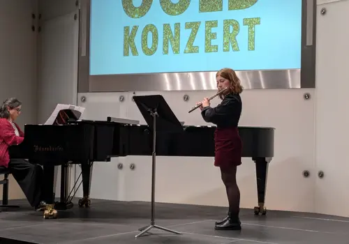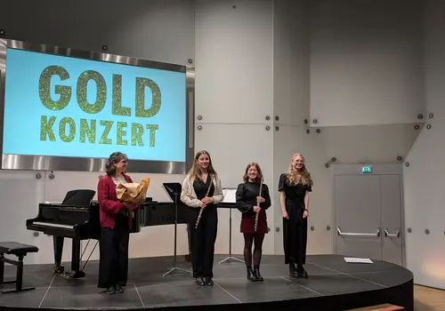 Bei einem öffentlich zugänglichen Goldkonzert bewiesen die Schülerinnen Felicitas Scholz und Johanna Großberger aus der Klasse von Regina Maderthaner und Theresa Schmid aus der Klasse Fereshteh Rahbari ihr Können vor einer Prüfungskommission und dem Publikum.