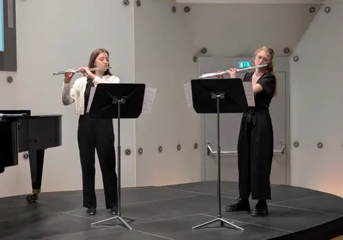 Die Abschlussprüfung der Querflöten fand am 24. Jänner im Kristallsaal vom Schloss Rothschild statt.