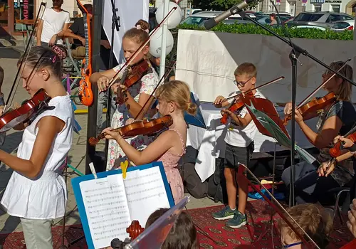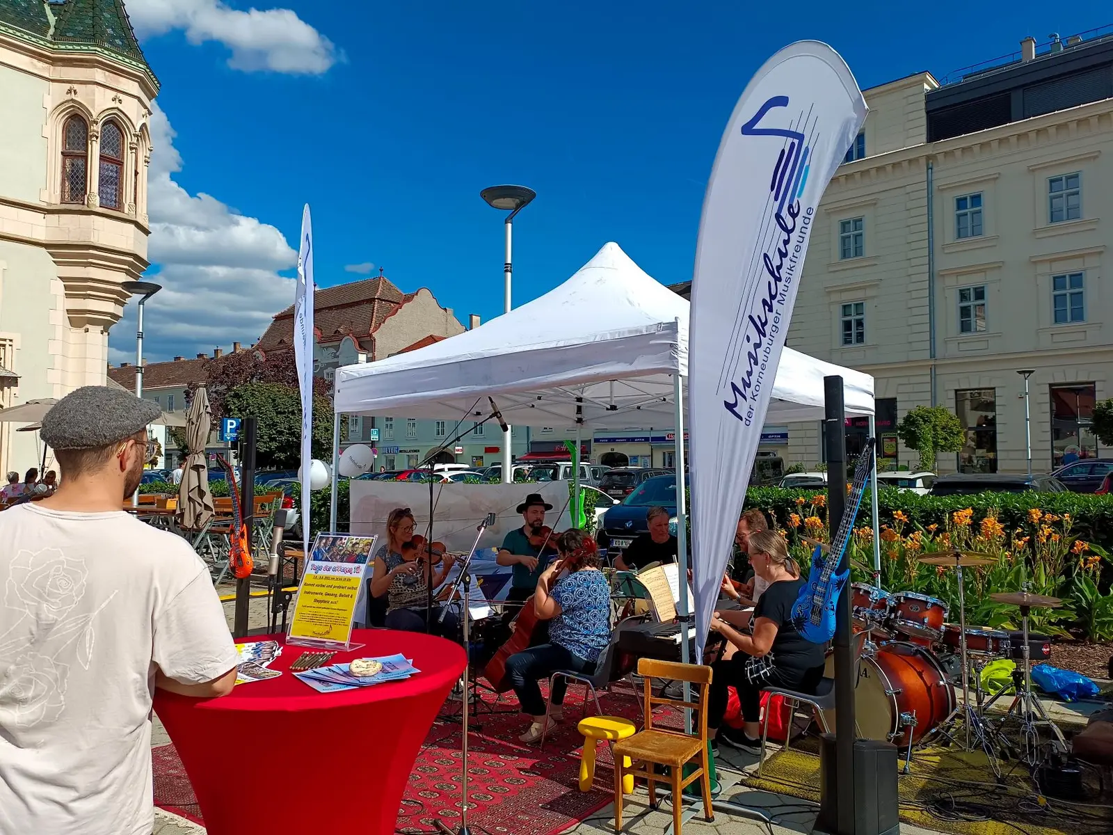 Nun fand schon zum 8.Mal MONTMARTRE in Korneuburg statt. Diese jährlich stattfindende Open-Air-Ausstellung vor dem Rathaus wird von vielen Künstler:innen genützt, um ihre Werke zu präsentieren. So kann man eine Vielfalt an Malereien und Skulpturen bewundern. Musikalisch umrahmte die Musikschule der Korneuburger Musikfreunde diese Veranstaltung. Schüler:innen und Lehrer:innen musizierten!