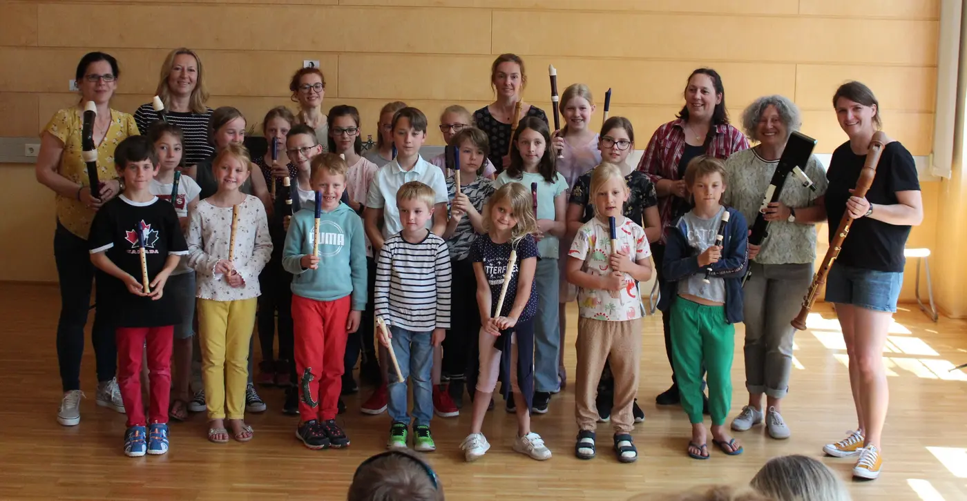 Für die Kleinsten stand das Malen und für die mäßig-fortgeschrittenen und fortgeschrittenen Schüler das Improvisieren im Mittelpunkt. Natürlich durfte eine Präsentation des Gelernten für die Eltern am Ende des Vormittags nicht fehlen. Die Lehrkräfte unterstützten überwiegend mit den tiefen Instrumenten, wie Tenor,- Bassblockflöten sowie mit dem Subbass, bei der Aufführung. Für die mehr als 20 Blockflötenteilnehmer:innen war es für die meisten ein einmaliges Erlebnis, erstmalig in so einem großen Blockflötenorchester mit coolem Sound zu spielen. Der Tenor aller Teilnehmenden: eine tolle Motivation für die Kids und eine Fortsetzung im nächsten Schuljahr, in der Hoffnung alle sieben Musikschulen der Region ins Boot zu holen!