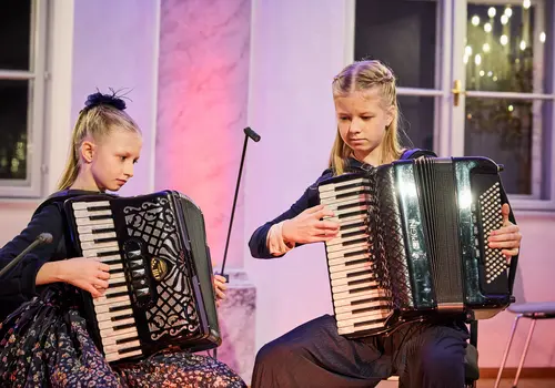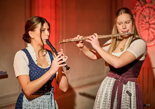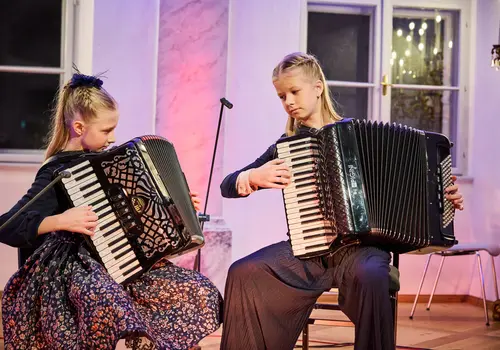 11. Dezember: Das Akkordeon-Duett Leonie (12 Jahre) und Sophia Lugbauer (10 Jahre) aus der Musikschule Alpenvorland ist im Adventkalender mit dem Lied „Feliz Navidad" von José Feliciano zu hören.