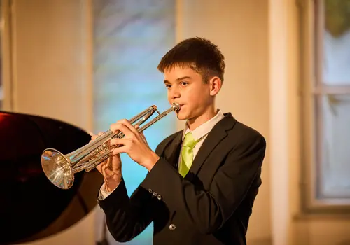 16. Dezember: Simon Pruckner (14 Jahre) aus der W. A. Mozart-Musikschule Horn spielt auf der Trompete „Share my yoke“ von Joy Webb.