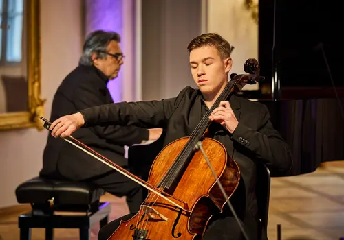 9. Dezember: Tibor Peter (16 Jahre) von der J.G. Albrechtsberger Musikschule der Stadt Klosterneuburg spielt am Cello den „1. Satz e-moll“ von François Francœur.