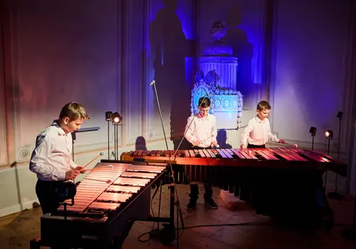 3. Dezember: Das Schlagwerk-Trio „PerContAction“ – Maximilian Gumpinger (12 Jahre) und Felix Gumpinger (9 Jahre) von der Regionalmusikschule Sieghartskirchen und Adam Jöbstl (12 Jahre) von der Regionalmusikschule Stockerau – spielt „Habanera“ von Georges Bizet.