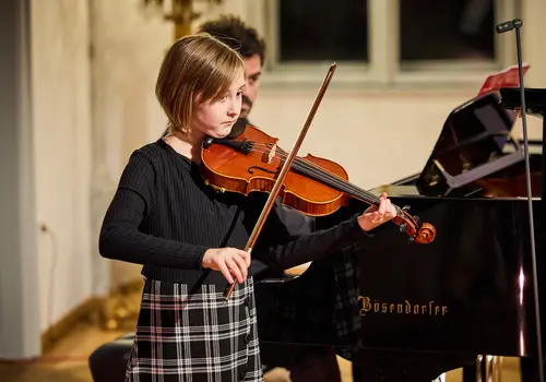 13. Dezember: Josefine Rieder (11 Jahre) vom Gemeindeverband der Musikschule Wienerwald Mitte spielt auf der Violine „Liebesfreud“ von Fritz Kreisler.