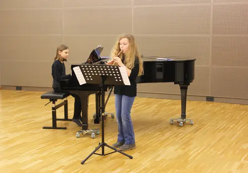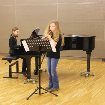 Eine Vielfalt an Instrumenten wurde wieder präsentiert, so bewiesen die jungen Musiktalente ihr Können vor dem anwesenden Publikum und erfuhren in diesem Rahmen ein wenig von der bevorstehenden Wettbewerbsatmosphäre. Zu hören gab es Kammermusik am Klavier, Holz- und Blechblasinstrumente in solistischer Form, Zupfinstrumentenensembles, Solo Schlagwerk sowie ein Gesangsensemble.