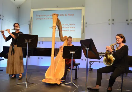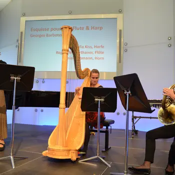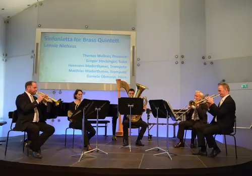 Eine fulminante Lehrermatinee wurde dem Publikum am So 6. November 2022 im sehr gut besuchten Kristallsaal geboten. Den Auftakt machte das Streicherensemble mit dem Brandenburgischen Konzert Nr. 3, womit ein abwechslungsreiches Konzert eingeleitet wurde. Nach weiteren barocken Klängen wurde es moderner mit Komponisten aus dem 20. Jahrhundert – es gab Volkstümliches auf der Steirischen Harmonika und Zeitgenössisches auf dem Vibraphon sowie vom Trio mit Harfe, Flöte und Horn. Das Programm blieb vielseitig, Ensembles spielten Kammermusikstücke, Astor Piazzolla wurde vierhändig am Klavier vorgetragen. Eine Eigenkomposition gab es von Tata Asatiani-Aigner alias Filia Solis und auch die Holzbläser durften nicht fehlen und spielten im Ensemble. Den Abschluss machte das Blechbläserquintett. Die Lehrermatinee begeisterte nicht nur die Zuhörerinnen und Zuhörer, sondern auch Musikschuldirektor Christian Blahous, der sich über das gelungene Konzert freute.