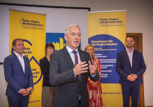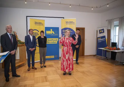 Zum Abschluss der Leiter:innenakademie am Mi 11. Oktober 2023 präsentierten alle 18 Musikschulleiterinnen und -leiter sowie Lehrenden über zwei Tage hinweg im feierlichen Rahmen ihre Abschlussarbeiten. Nach einer Beurteilung durch die Kommission, bestehend aus den beiden Geschäftsführer:innen des MKM – Tamara Ofenauer-Haas und Kamil Tichanek – sowie Dir. Mag. Johannes Landsteiner, Leiter der Kommunalakademie NÖ, und Katharina Würzl, Leiterin des Gemeindeverbandes der Musikschule Wienerwald Mitte/Purkersdorf, durften die diesjährigen Absolventinnen und Absolventen des Lehrgangs 2022/2023 freudig ihr Abschlusszertifikat von Martin Lammerhuber, dem operativen Geschäftsführer der Kultur.Region.Niederösterreich, entgegennehmen.