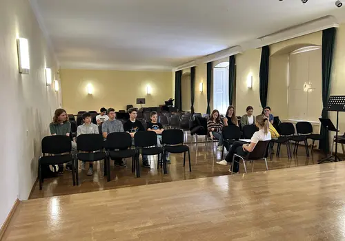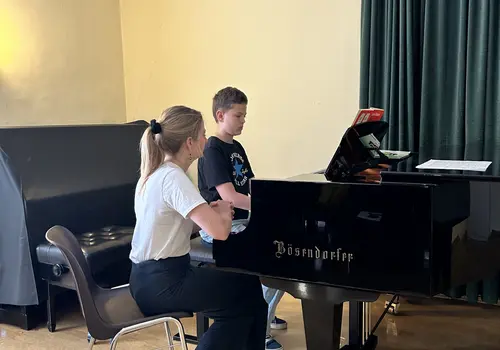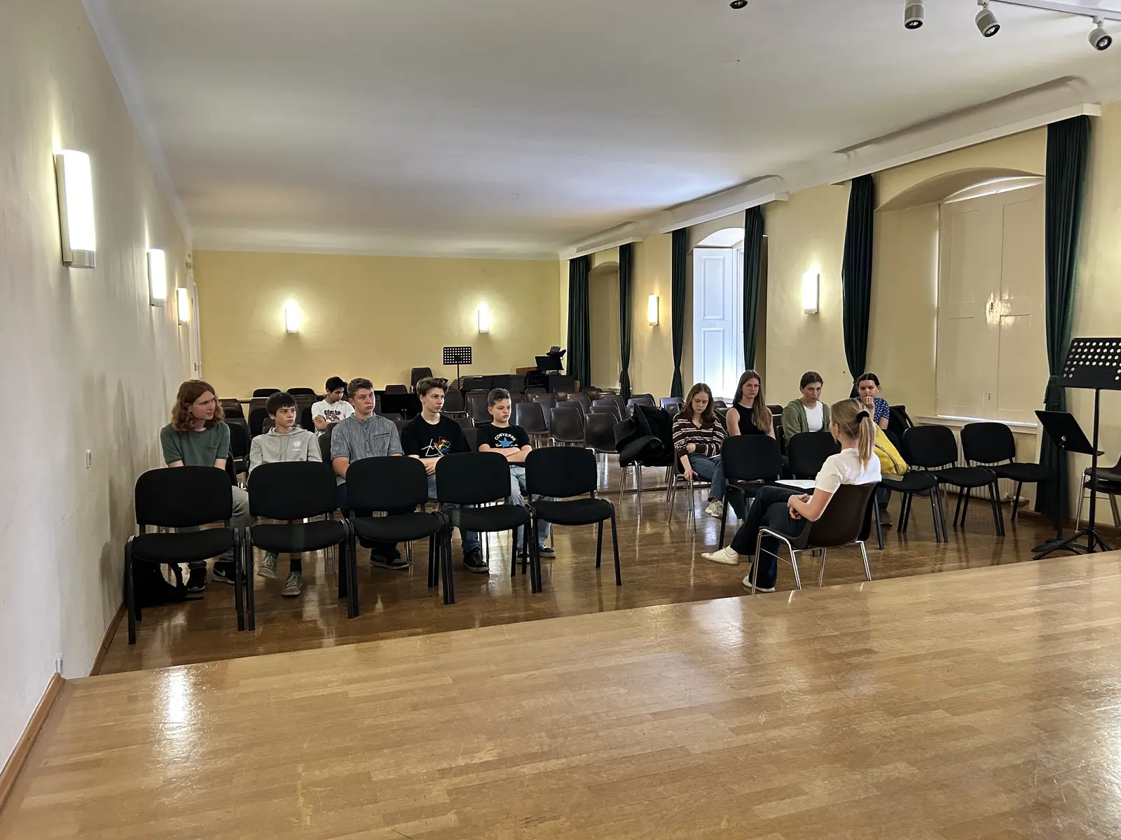 Das Programm des eintägigen Coachings war dicht gefüllt: Giesela Jöbstl, Pianistin und Lehrbeauftragte an der MDW, gab Klavierunterricht zur Vorbereitung für die Zulassungsprüfung von musikpädagogischen Studienrichtungen. Musiktheorie und Gehörbildung stand bei Anselm Schauffler, Violinist, Komponist und Pädagoge für Musiktheorie und Gehörbildung am Johann-Joseph-Fux Konservatorium Graz und an der KUG auf dem Programm. Schließlich absolvierten die jungen Musikerinnen und Musiker auch noch ein Auftritts- und Mentaltraining bei Joanna Kaniewska-Eröd, Violinistin, Pädagogin und Mentaltrainerin.