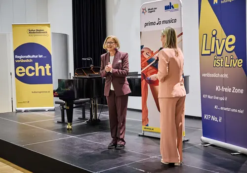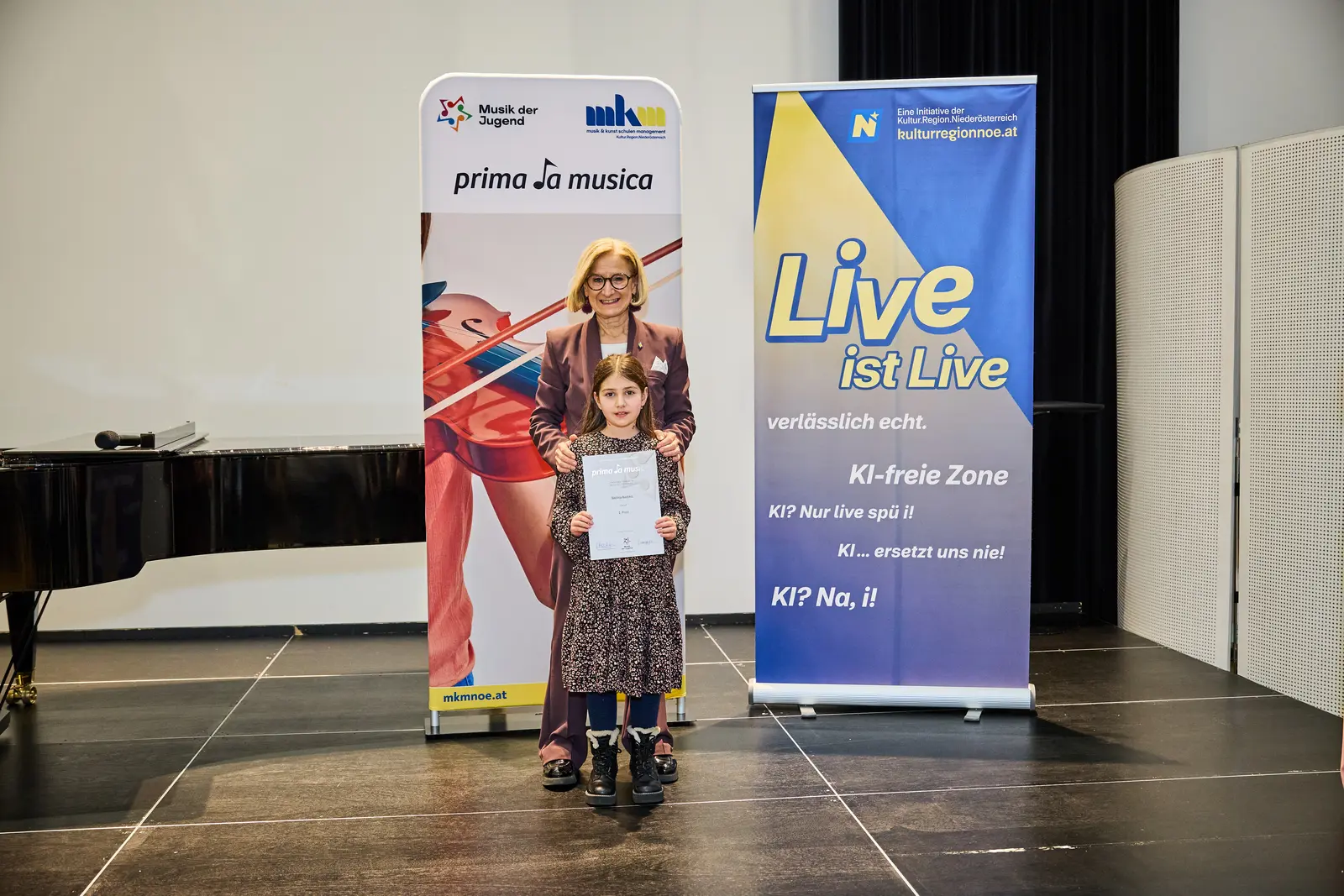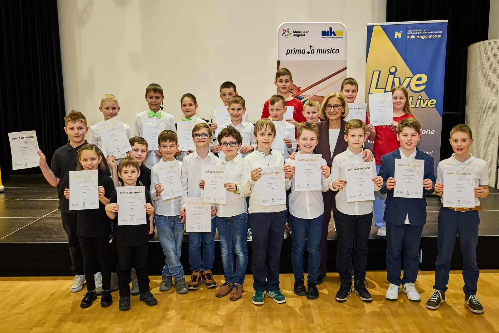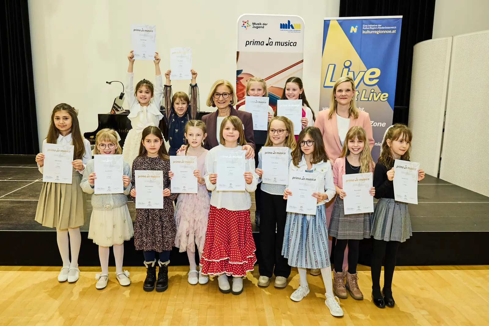 Am Mittwoch, 25. Februar 2026, besuchte Landeshauptfrau Johanna Mikl-Leitner den Musikwettbewerb prima la musica und nahm die feierliche Urkundenvergabe vor.