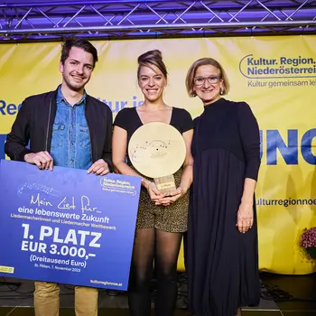 Beim diesjährigen Liedermacherinnen- und Liedermacher-Wettbewerb der Kultur.Region.Niederösterreich „Mein Lied für … eine lebenswerte Zukunft“ sicherten sich Niederösterreichs Musikschulen die vordersten Plätze. Gold ging an Rosie & Stoffi aus Perchtoldsdorf für ihren Beitrag „Hey, hier ruft die Zukunft an“. Rosie ist aktive Schülerin bei Isabella Zach im Fach Gesang an der Franz Schmidt Musikschule Perchtoldsdorf, Stefan war lange Zeit Klavierschüler bei Stefan Kronowetter. Das Geschwisterpaar hat nicht nur einen klingenden Mutmacher für die Zukunft geschrieben, sondern bekommt dafür auch noch eine Single-Auskoppelung aus dem 2024 erscheinenden Sampler-Album der „Top 13“-Beiträge.