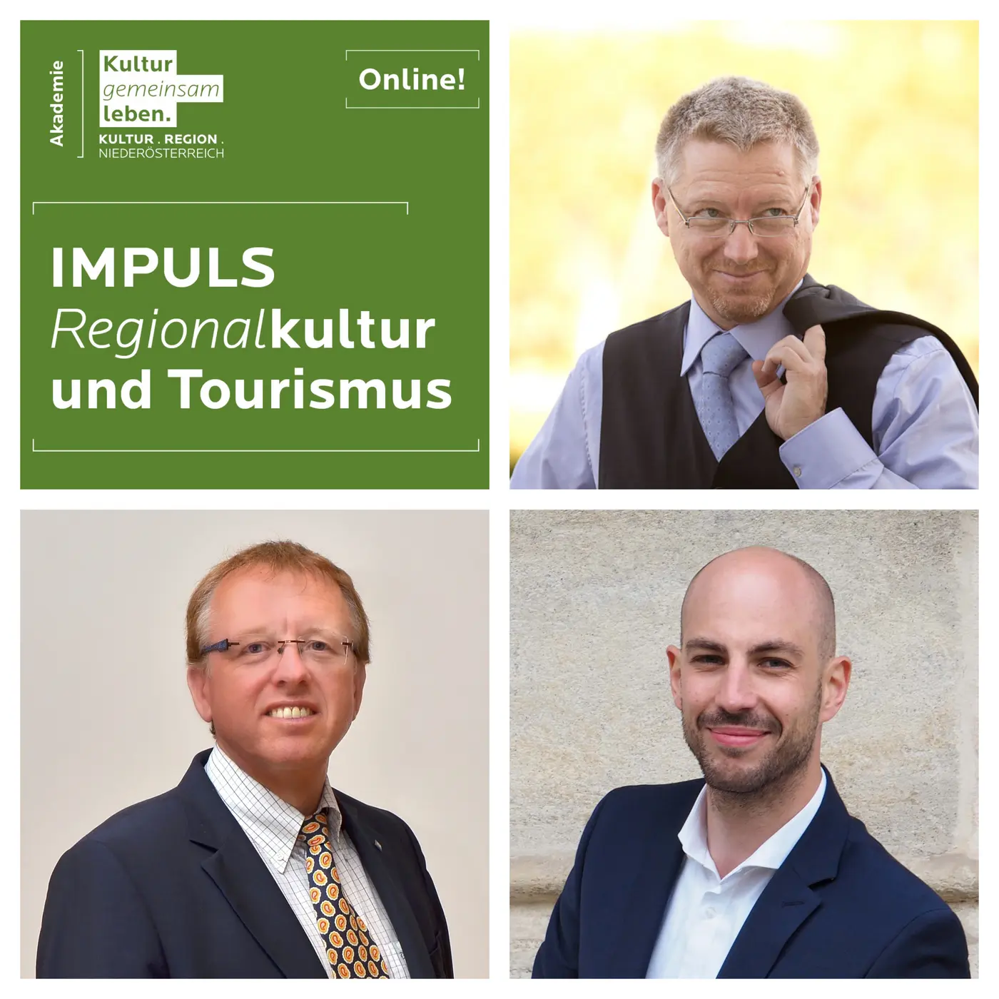 Wie Regionalkultur touristisches Interesse weckt, darüber diskutieren am Do 16. März 2023 von 17.00 bis 19.00 Uhr in einem Online-Impulsvortrag Adi Aigner, Tourismusbüro Wachau-Nibelungengau-Kremstal & Donau Niederösterreich Tourismus, Johannes Diemt, Bürgermeister Gemeinde Würmla sowie Michael Schrabauer, Kulturgemeinderat Erlauf & Tourismus Consulting.