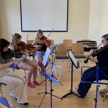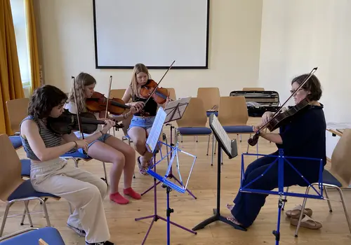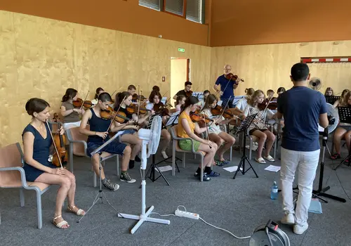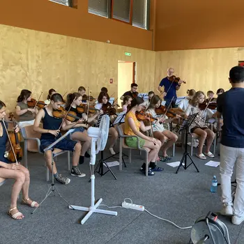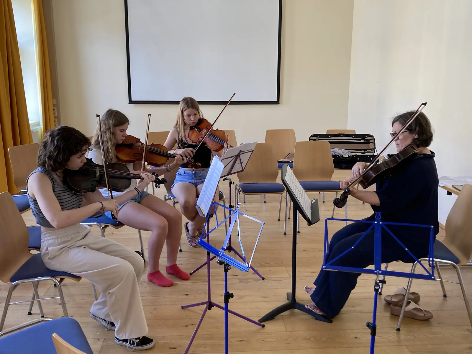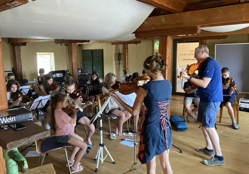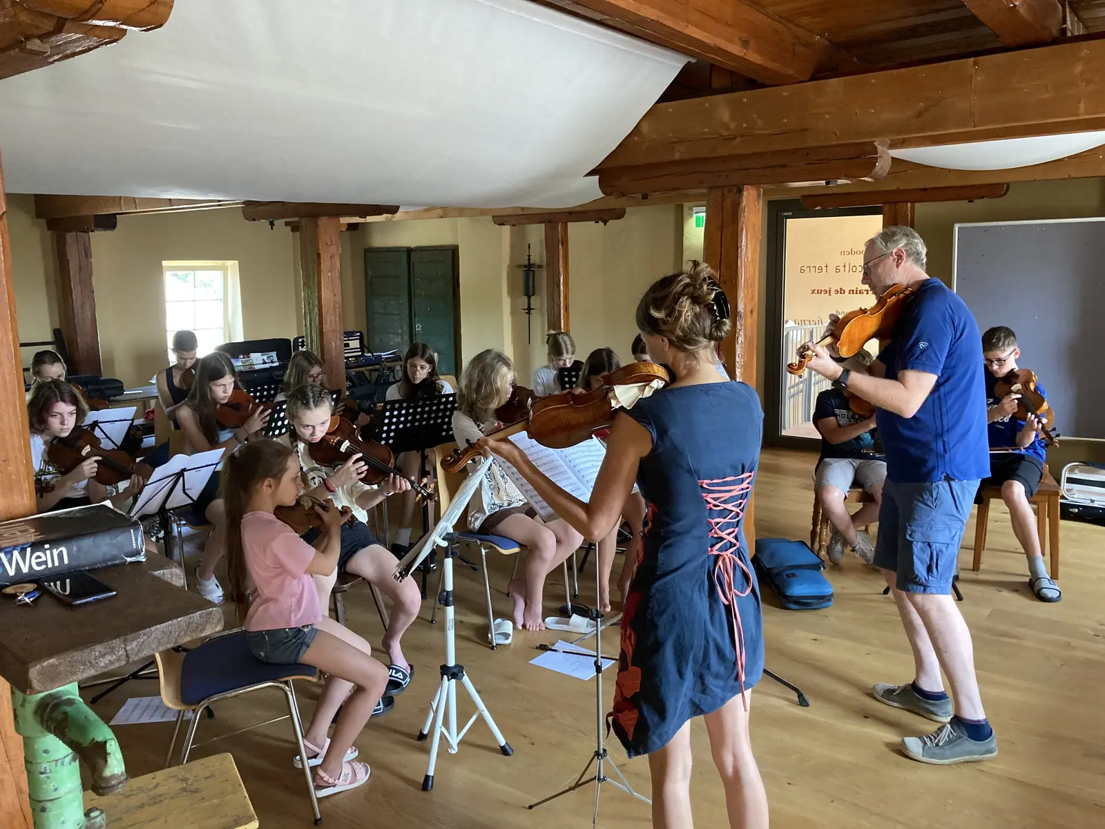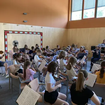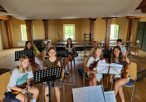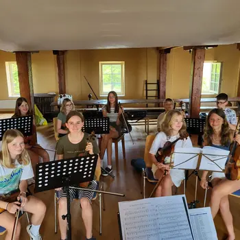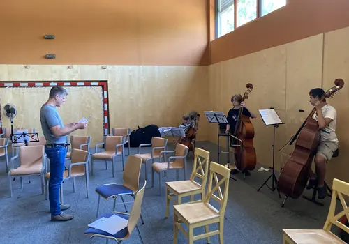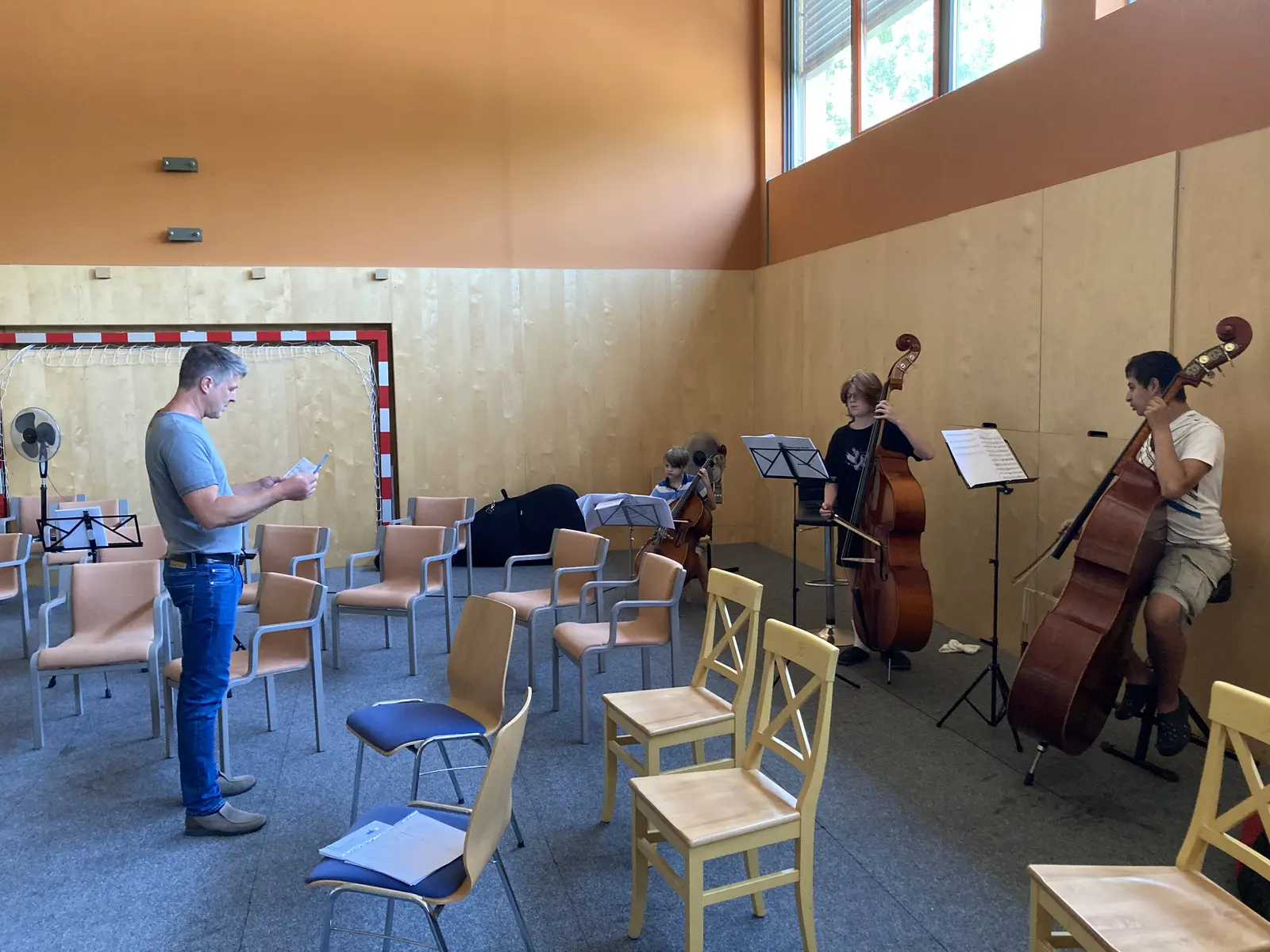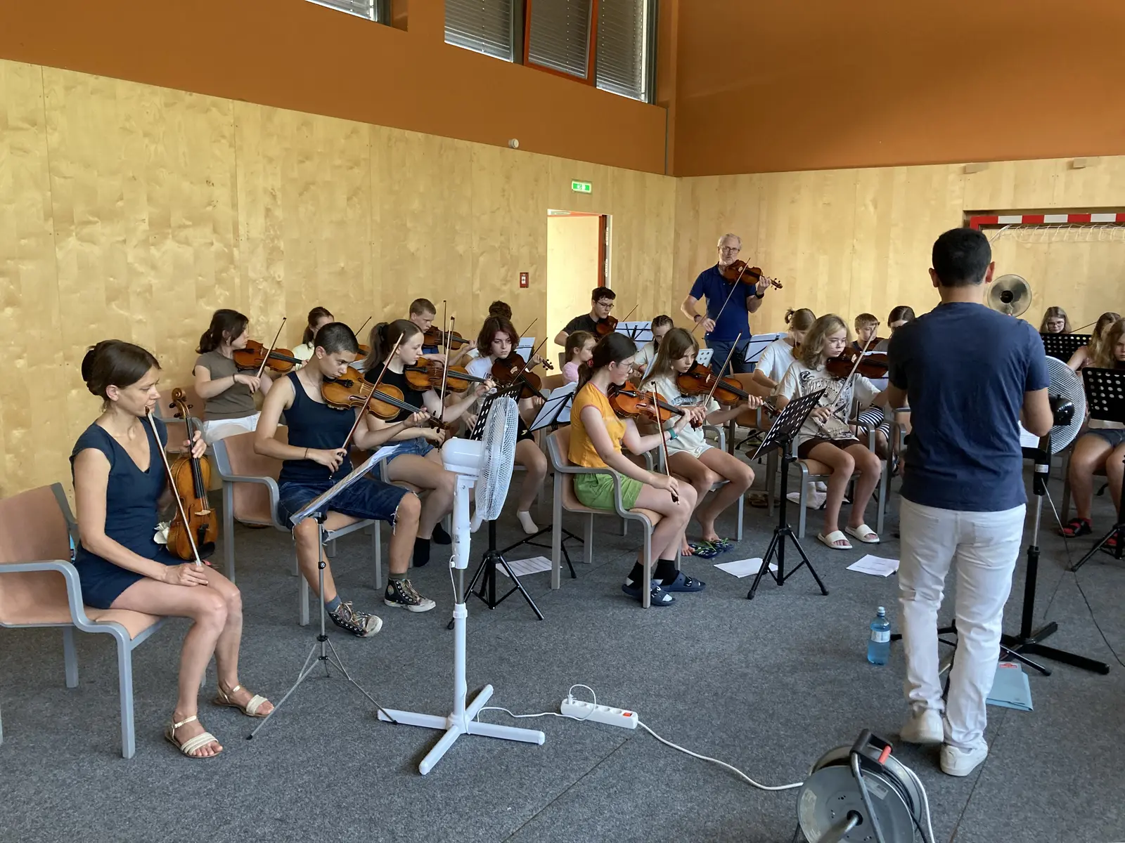 Junge Streicherinnen und Streicher erlebten das gemeinsame Musizieren im Orchester unter der Anleitung eines engagierten Referent:innen-Teams und des Dirigenten Edwin Cáceres-Penuela, der dank seiner kolumbianischen Herkunft auch einen südamerikanischen Flair in das Camp brachte. Seine Begeisterung und Leidenschaft für die Musik übertrug sich schnell auf die Teilnehmenden, die mit viel Eifer und Freude bei den gemeinsamen Orchesterspielen und Proben in Stimmgruppen dabei waren. So konnten die jungen Musikerinnen und Musiker ihr volles Potenzial entfalten.