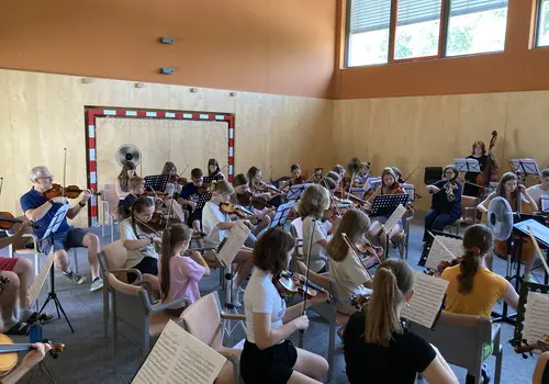 Das Highlight der beiden Streichercamps waren die großartigen Abschlusskonzerte für Eltern und Familie am Fr 14. Juli (Piccolino) und Sa 15. Juli 2023 (Piccolo) im Turnsaal ihrer Unterkunft, des JUFA Hotel Weinviertel, welcher durch die Klänge zum Konzertsaal wurde. Trotz der sommerlichen Temperaturen zeigten die jungen Musikerinnen und Musiker Höchstleistungen und präsentierten stolz und voller Hingabe ihre erarbeiteten Werke aus verschiedenen Epochen und begeisterten das Publikum mit ihrem Können.