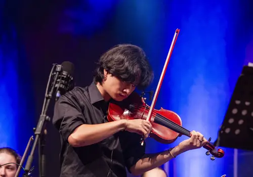 Auf der Geige begeisterte der Klosterneuburger Fabian Mittermayer – er ist seit März 2019 Konzertmeister des Jugendsinfonieorchester Niederösterreich und konzertierte bereits in internationalen Konzertsälen, darunter der Carnegie Hall in New York. Für einen besonderen Moment sorgte E-Gitarrist Dominik Hollendohner. Ihm riss während des Konzerts eine Saite, das Problem wurde jedoch rasch behoben und das Publikum dankte es ihm mit großem Applaus.