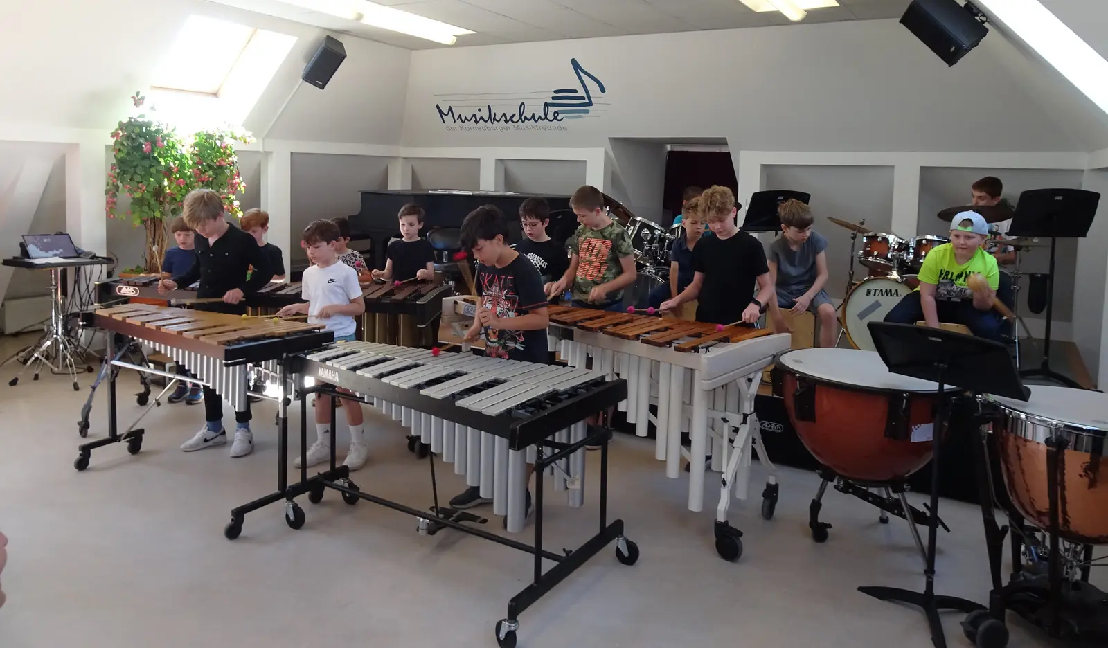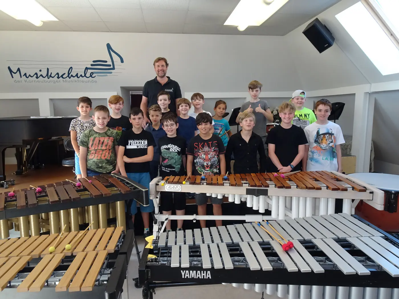 Der Rhythmus stand im Vordergrund bei der Matinee der Schlagwerker und Schlagwerkerinnen am Sa 15. Juni 2024 in der Musikschule der Korneuburger Musikfreunde. Schülerinnen und Schüler der Klasse Peter Vasicek zeigten kurz vor Schulschluss, was sie so alles drauf haben. Das Programm war vielfältig. Die verschiedensten Trommeln und Percussioninstrumente kamen zum Einsatz. Aber das war nicht alles. Auch die Stabspiele wie Marimbaphon, Xylophon und Vibraphon nahmen einen großen Part ein und stellten das Melodiespiel in den Vordergrund.