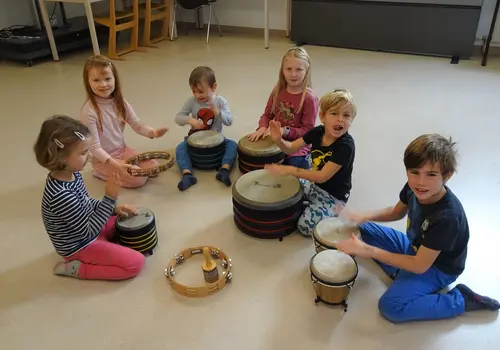 Rhythmikspiele 4: Kids mit Trommeln und Percussioninstrumenten