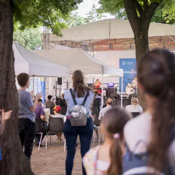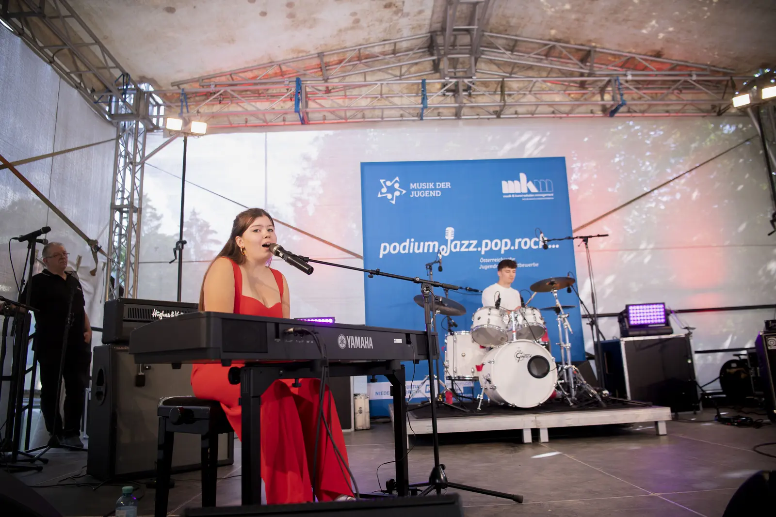 In den Stilrichtungen Jazz, Pop und Rock bewiesen rund 120 junge Musikschülerinnen und -schüler im Alter von 8 bis 28 Jahren ihr Talent mit erstklassigen Auftritten beim Landeswettbewerb podium.jazz.pop.rock… von Di 13. bis Fr 16. Juni 2023 im Schloss Wolkersdorf. Der Wettbewerb gab den Kindern und Jugendlichen die Chance, mit ihrer Band – oder auch solistisch in den Kategorien podium.singer.songwriter & more und Drumset – in einem tollen Ambiente aufzutreten. Dieses Jahr stand podium.jazz.pop.rock… unter dem Motto „Wie sounded Frieden?“, wodurch die Nachwuchsmusikerinnen und -musiker mit ihren Songs auch eine wichtige Botschaft an das Publikum und in die Welt hinaus trugen.