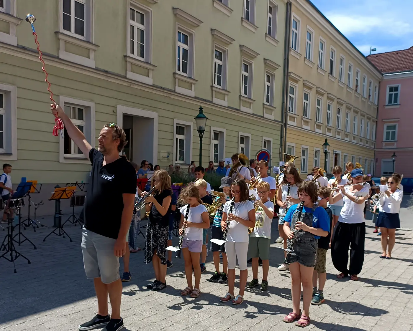 Die Sommermusiktage gehören in der Musikschule der Korneuburger Musikfreunde nun schon zur Tradition. „In den Sommerferien wird eine Woche mit den Nachwuchsbläsern und Nachwuchsbläserinnen musiziert.“ erzählt uns Musikschuldirektor Peter Vasicek. Gelernt hat man schon während des Schuljahres. Jetzt in den Sommerferien geht es um das Gemeinschaftserlebnis beim Zusammenspiel und – wie kann es anders sein – natürlich auch um das Musizieren während des Marschierens, wie man das in der Blasmusik oft braucht. Auch das muss man mehrmals machen, bis es in Fleisch und Blut übergeht.