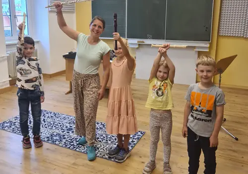 Außerdem lernten im Rahmen des Korneuburger Ferienspiels Interessierte unter der Leitung von Matea Novosel die Flötenfamilie kennen. Sie entlockten den Instrumenten die ersten Töne und freuten sich über das Erfolgserlebnis!