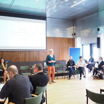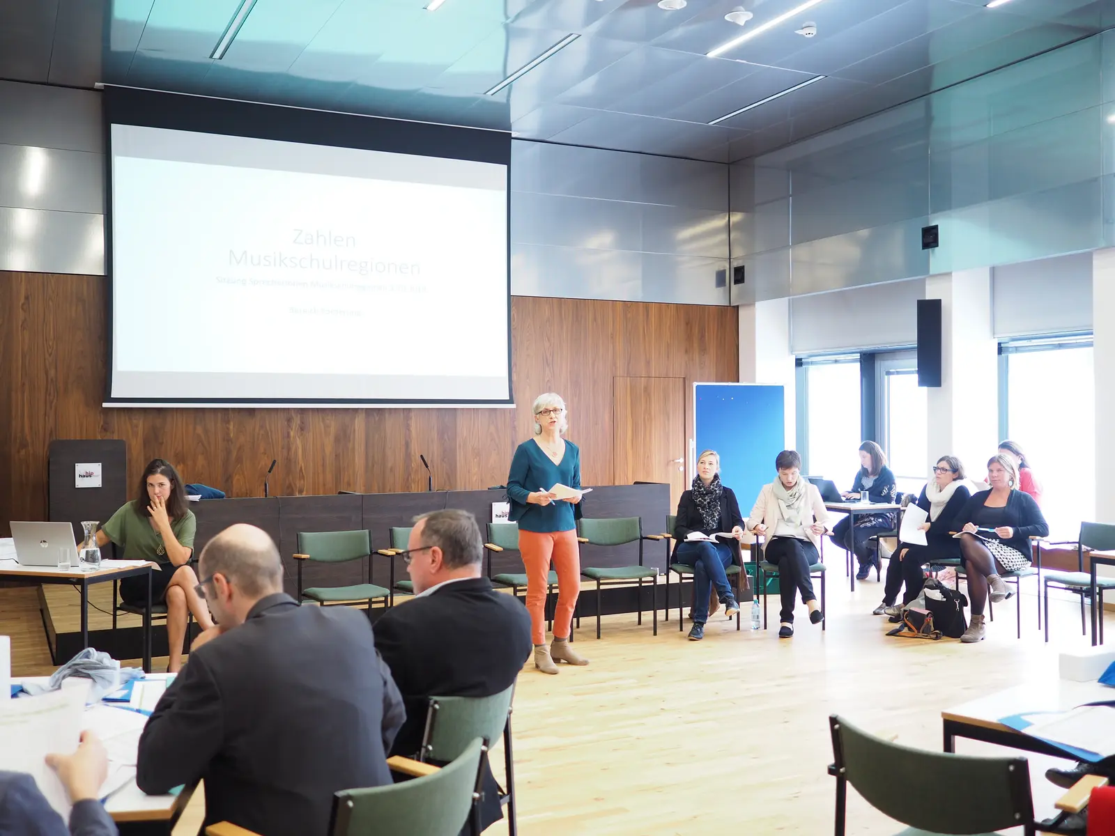 Als Gastreferentin erläuterte Doris Wagner von der Bildungsdirektion Niederösterreich die Struktur und Aufgaben sowie die Arbeitsschwerpunkte der sechs Bildungsregionen. Nach einem Überblick über die Arbeitsfelder der drei Bereiche „Lehre und Unterricht“, „Förderung“ und „Talente“ des Musik & Kunst Schulen Managements stand in Form von „Round Tables“ ein intensiver Austausch der insgesamt Musikschulregionssprecherinnen und -sprecher auf dem Programm.
