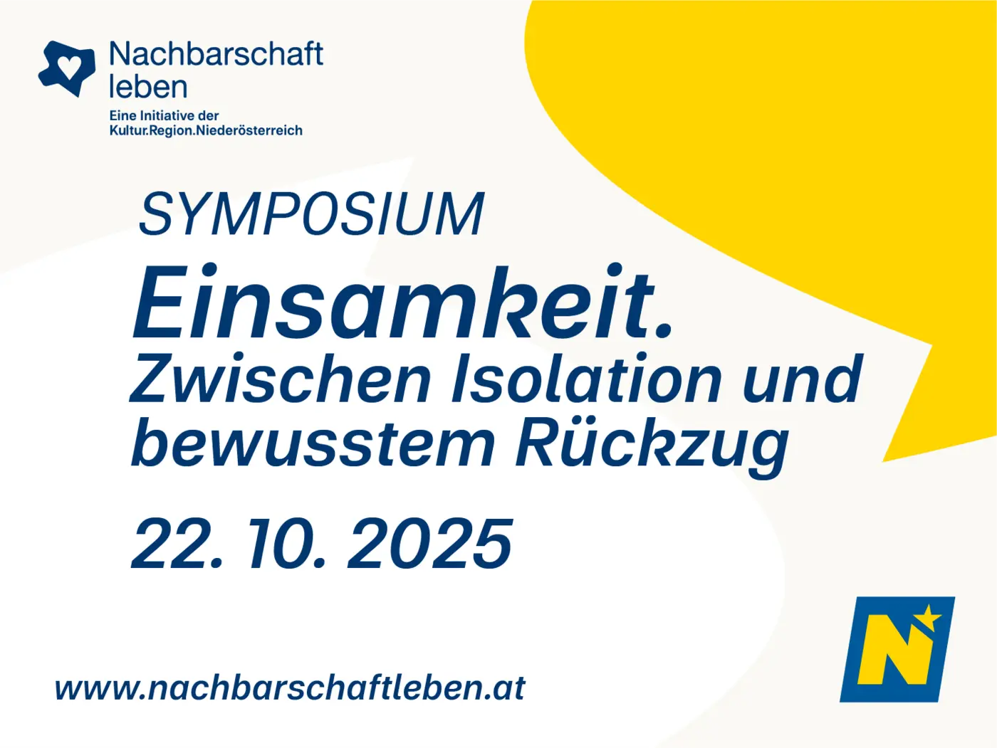 Das neueste Symposium der Reihe "Kultur der guten Nachbarschaft" widmet sich dem Thema "Einsamkeit. Zwischen Isolation und bewusstem Rückzug". Gemeinsam mit Expertinnen und Experten werden verschiedene Perspektiven eines gegenwärtig sehr präsenten Gefühls – dem der Einsamkeit – erörtert. Dabei wird die Generation der Jugendlichen ebenso berücksichtigt, wie die ältere Generation. Interessante Impulse aus der Praxis geben spannende Einblicke in interessante Maßnahmen, die Menschen dabei unterstützen, Gefühle der Einsamkeit zu überwinden und das „Allein-sein“ auch als Qualität einer Form der Selbstbesinnung zu erleben.
