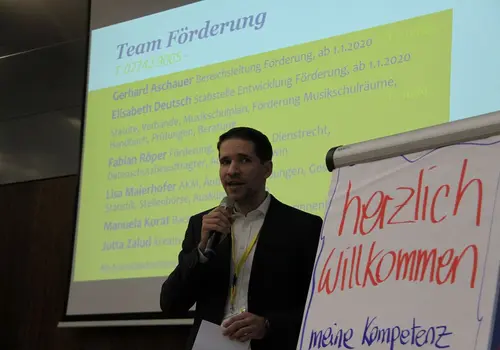 Zu diesem Thema sowie zu den Themen „Dienstrecht“ mit Mag. Johannes Lahninger, „Datenexport 10100 im Musikschulverwaltungsprogramm edwin“ und „Drucksorten gestalten“ erhielten die Teilnehmerinnen und Teilnehmer in vier Workshops Impulse und Hilfestellungen für ihre administrativen Tätigkeiten.