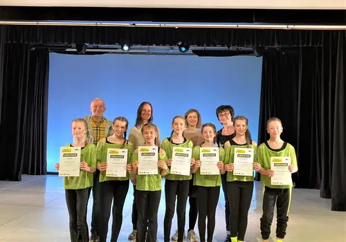 Zum Abschluss gab es für alle Teilnehmerinnen und Teilnehmer Urkunden und ein kleines Geschenk als Belohnung für ihre tollen Leistungen! Mit dem Sonderpreis KREATION für die beste selbst entwickelte Choreografie wurde das Ensemble „All 4“ unter der Leitung der Lehrpersonen Joanna Atta und Akino Distelberger von der Musikschule Wieselburg prämiert, das diesen begeistert entgegennahm.