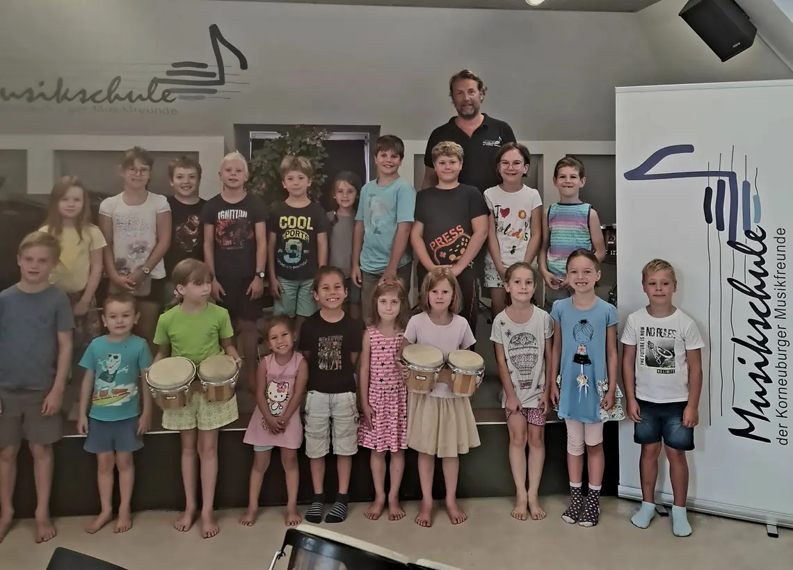 Trommeln rund um die Welt konnte man im Rahmen des Ferienspiels mit Musikschulleiter Peter Vasicek in der Musikschule der Korneuburger Musikfreunde. Ausprobiert wurden Trommeln und andere Percussioninstrumente aus verschiedenen Ländern. Der Andrang war groß, wollten es doch viele Kids nicht versäumen, im Steinwaysaal am Kirchenplatz eine rhythmische Weltreise anzutreten. Der Workshop verlief wie im Flug und in der Gruppe wurden die Emotionen der Teilnehmerinnen und Teilnehmer besonders angeheizt. Das Zusammenspiel klappte nach einigen Versuchen ganz gut. Man könnte sagen: HEISSE RHYTHMEN AN HEISSEN SOMMERTAGEN!