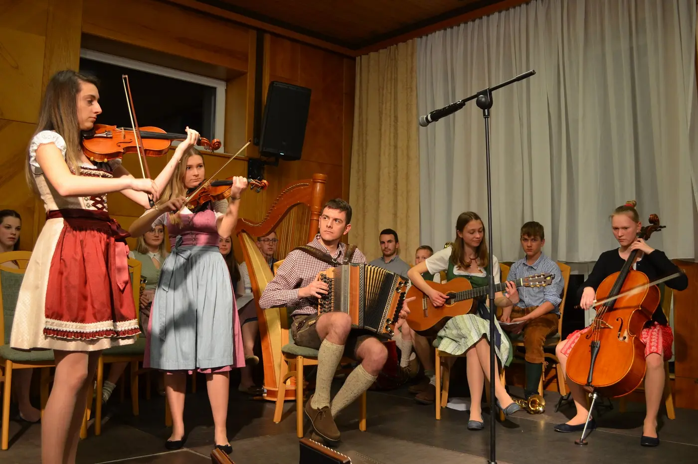„Junge Musikanten – spielt´s auf“ heißt es dann am Sa 27. April 2024 um 19.00 Uhr im Plenkersaal, wo zum traditionellen Volksmusikkonzert für Jung und Alt geladen wird. In verschiedensten Volksmusikbesetzungen gestalten Musikschülerinnen und Musikschüler einen heiteren Abend und präsentieren die Vielfalt der alpenländischen Volksmusik. Moderiert wird dieser Abend von unseren Volksmusiklehrkräften Petra Humpel und Johannes Lagler.