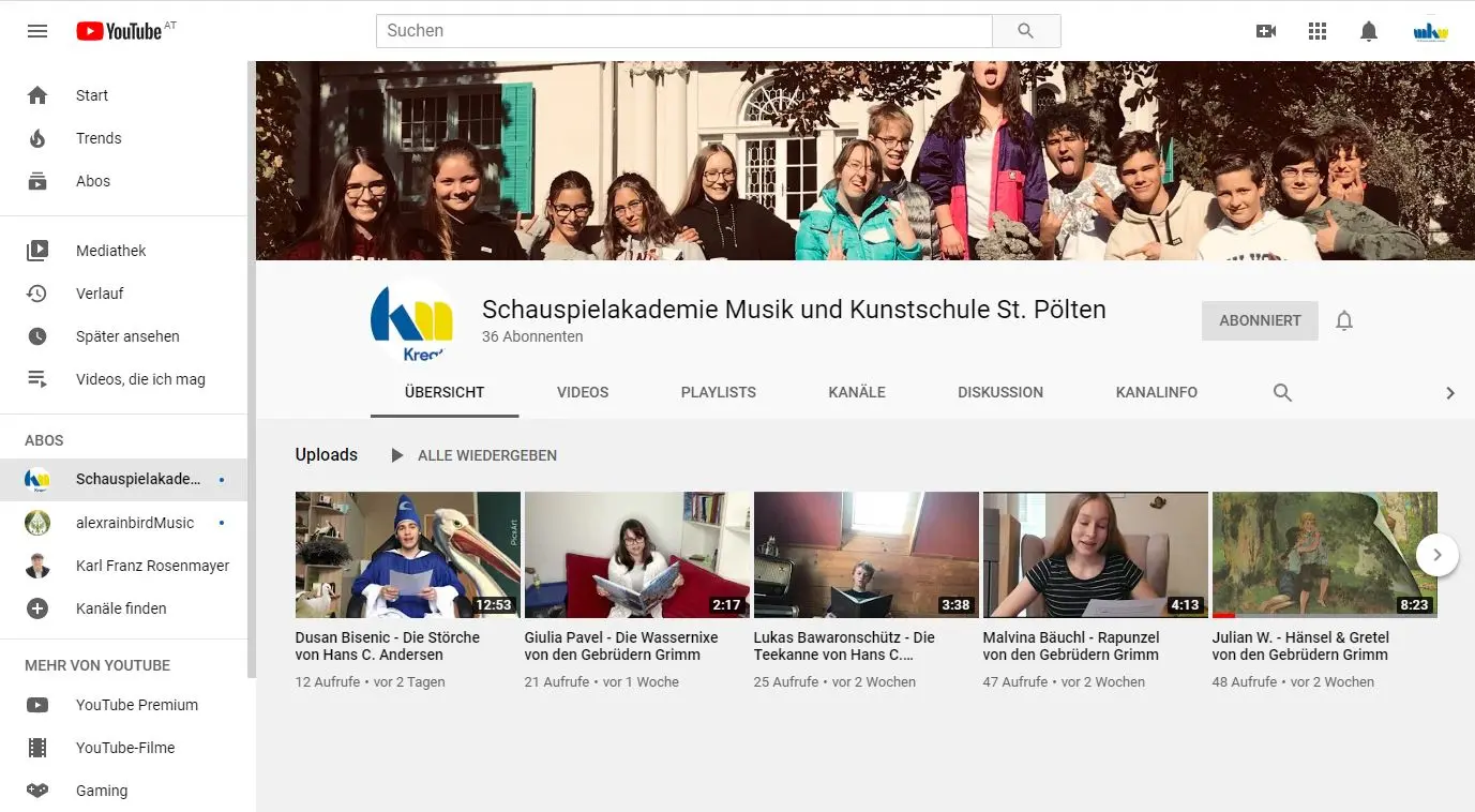 Youtube-Kanal der Schauspielakademie St. Pölten beim Ö1 Kulturforum