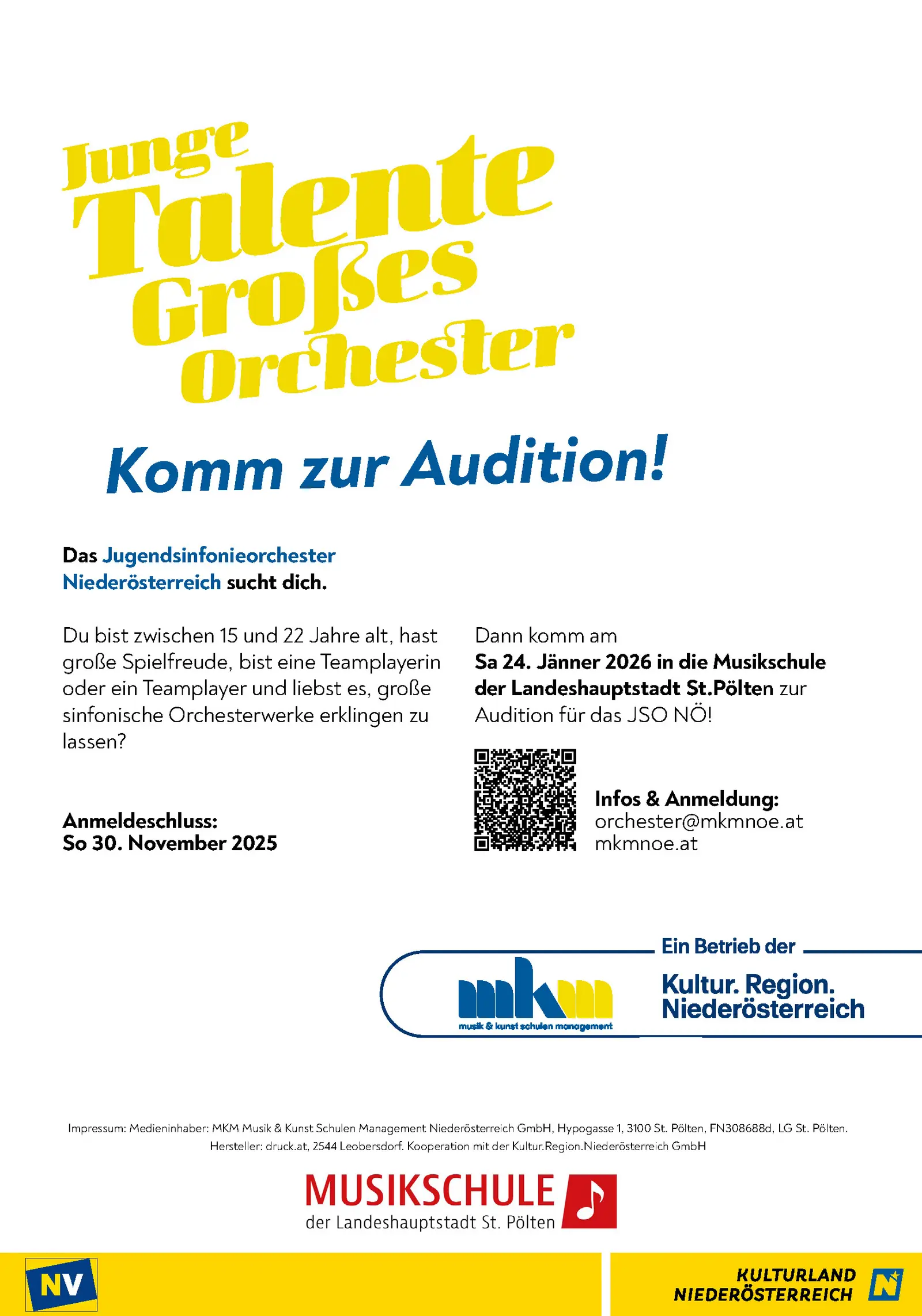Du bist zwischen 15 und 22 Jahre alt, wohnst in Niederösterreich oder besuchst eine niederösterreichische Musikschule?
