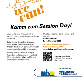 Beim Session Day treffen sich junge Musikerinnen und Musiker aus ganz Niederösterreich, um gemeinsam mit dem Jugendjazzorchester NÖ zu musizieren.