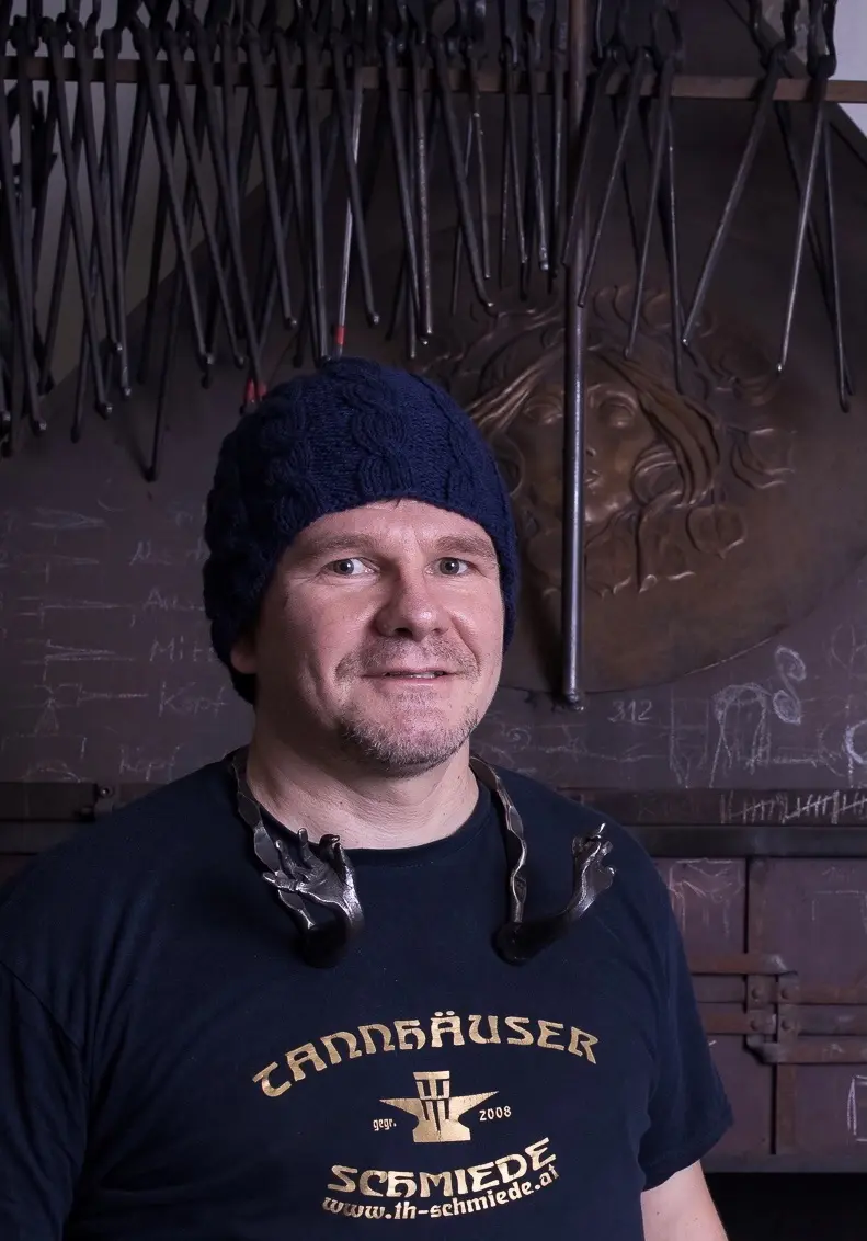 "Chef" in der Tannhäuser-Schmiede – dort werden seit 2008 metall-gestalterische Projekte realisiert.