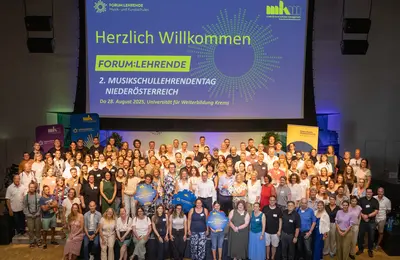 Mit dem 2. Tag für Musikschullehrende aus ganz Niederösterreich setzte das MKM Musik & Kunst Schulen Management Niederösterreich am Donnerstag, den 28. August 2025 ein starkes Zeichen für Austausch und Weiterentwicklung im Musikschulwesen. Rund 200 Musikschullehrende aus ganz Niederösterreich trafen sich an der Universität für Weiterbildung Krems, um gemeinsam in das neue Schuljahr zu starten – begleitet von zahlreichen frischen Impulsen, fachlichem Dialog und neuen Ideen. Nach dem erfolgreichen Auftakt im Vorjahr hat sich der Lehrendentag als zentrale Plattform etabliert, auf der sich Pädagoginnen und Pädagogen aus allen Regionen des Landes vernetzen und gemeinsam die Zukunft musikalischer Bildung gestalten.Das neue Musikschuljahr 2025/2026 steht ganz im Zeichen des Mottos „Durch Musik.Kunst.Kultur wachsen.“ Dabei liegt der Fokus vor allem auf kultureller Bildung schon im Kindesalter. „Die niederösterreichischen Musik- und Kunstschulen verfügen über bestens ausgebildete Lehrkräfte, die Kindern und Jugendlichen nicht nur Instrumental- oder Gesangsunterricht vermitteln, sondern vor allem die Freude an der Musik und dem gemeinsamen Erleben von Kunst und Kultur“, erklärt Tamara Ofenauer-Haas, Geschäftsführerin des MKM Musik & Kunst Schulen Management Niederösterreich. „Der heutige Tag ist ein gemeinsamer, starker Auftakt in das neue Musikschuljahr und der Startschuss zur Fortführung der Arbeit in einzelnen Fachgruppen. Hier geht es darum, die Expertise vieler Musikschullehrenden für ganz Niederösterreich zu vernetzen und sich mit der inhaltlichen Weiterentwicklung der vielfältigen Instrumentengruppen, Tanz und Musiktheorie zu beschäftigen.“